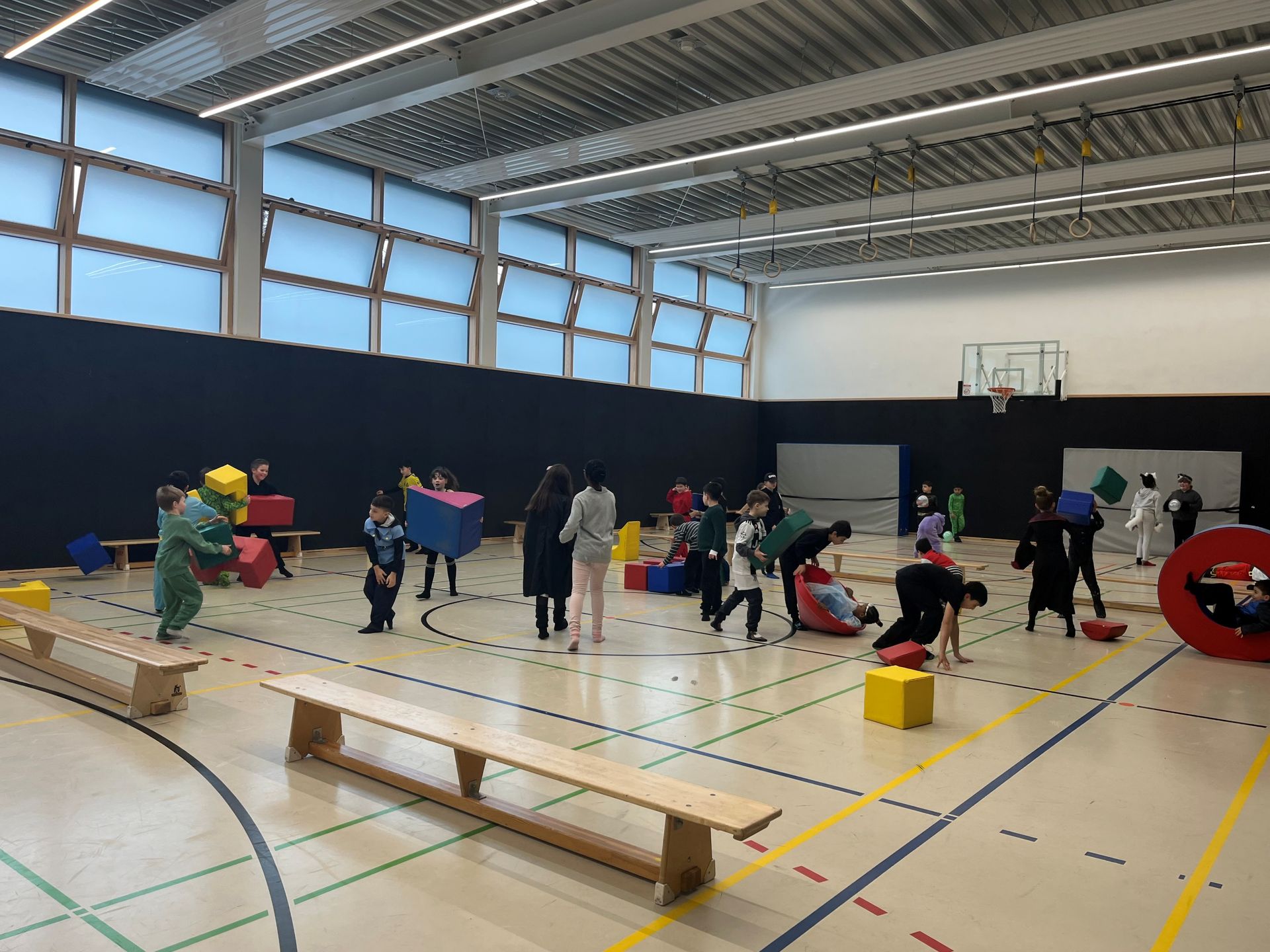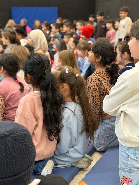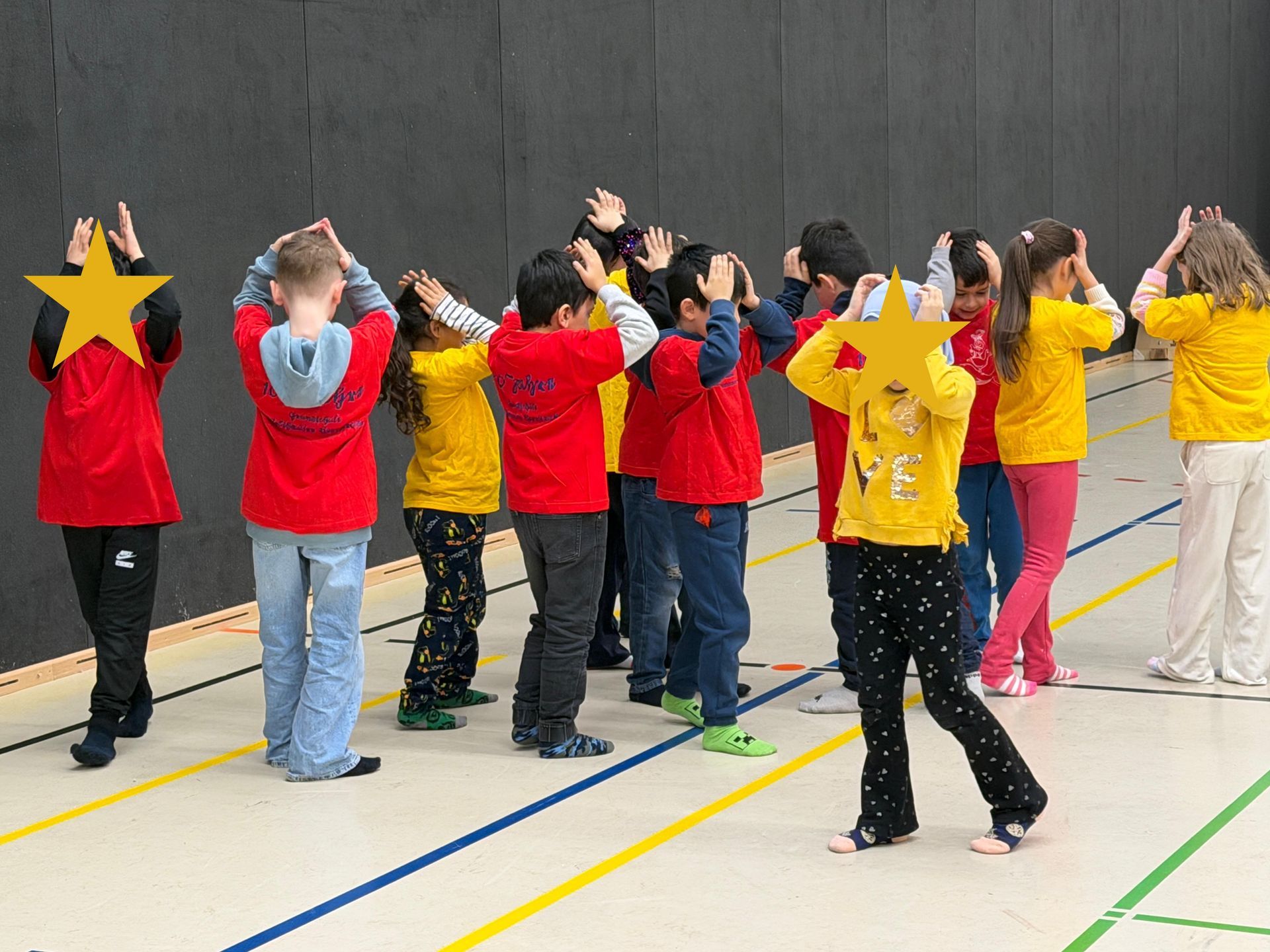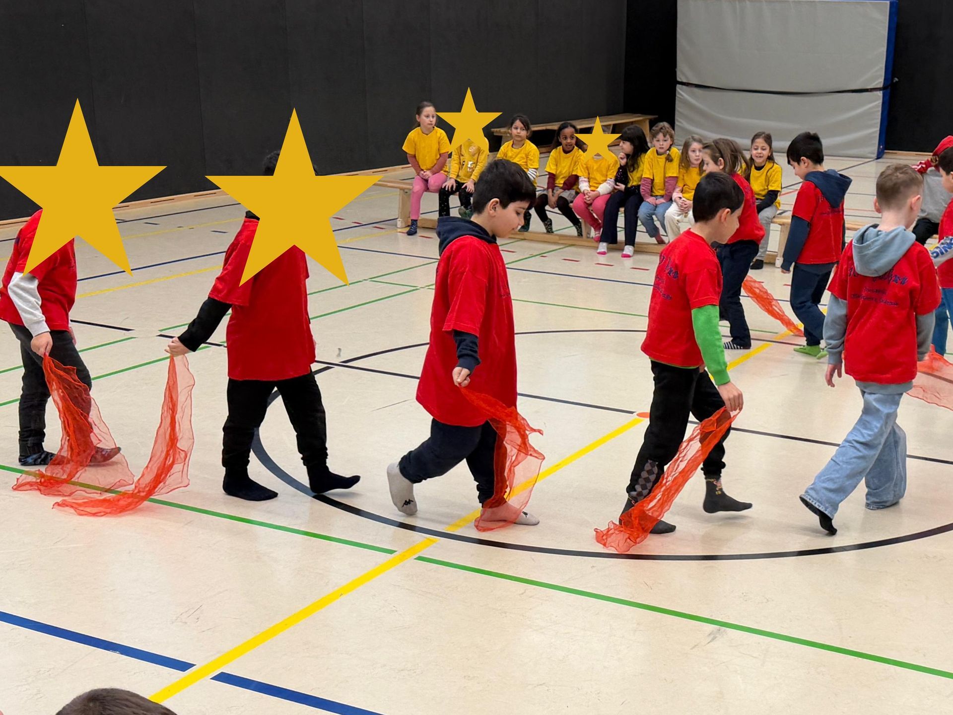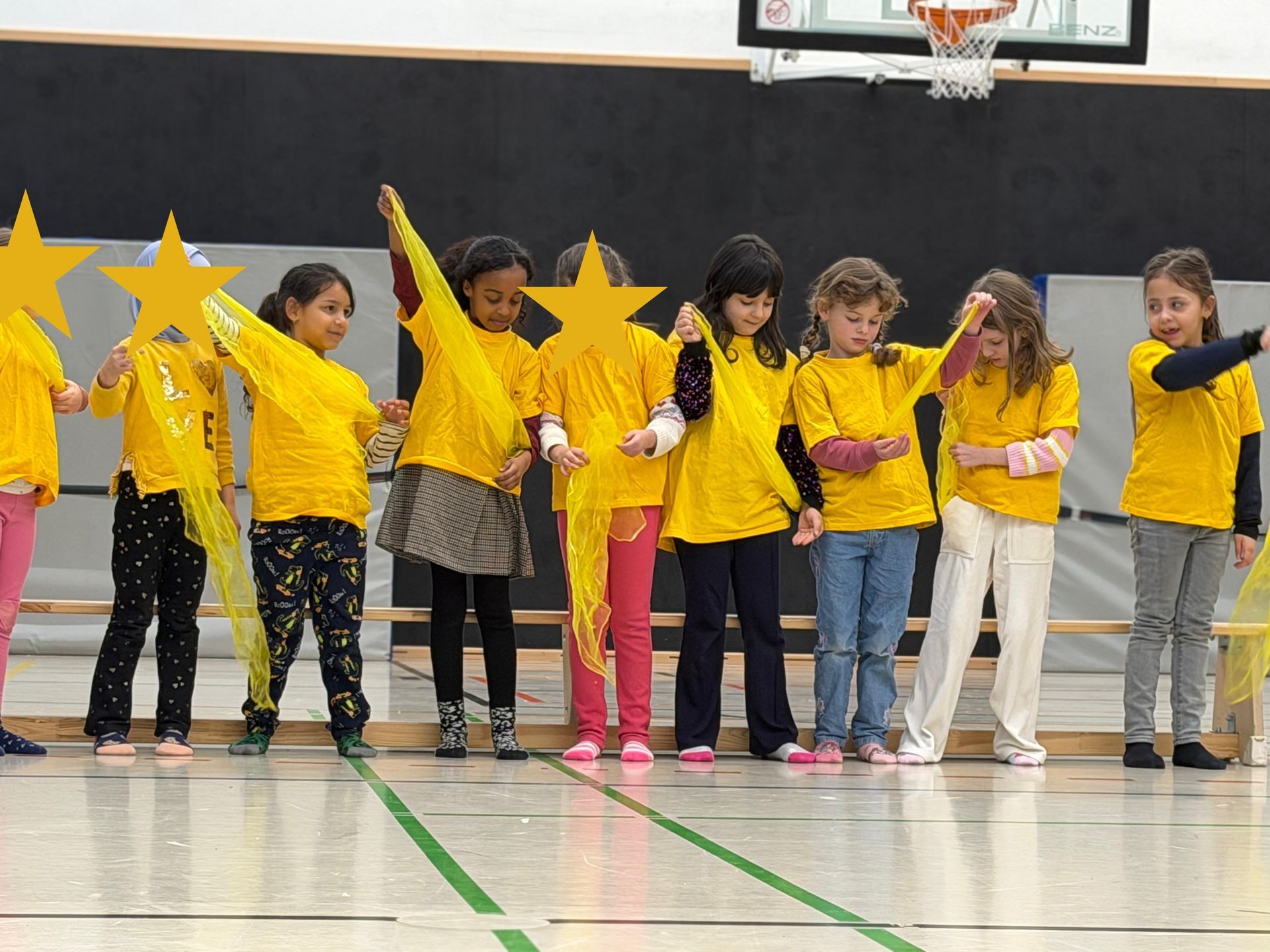 Auf den Hunnen zu einem gemeinsamen Tanzprojekt rund um das Bilderbuch „Die Königin der Farben“ von Jutta Bauer. Gemeinsam mit unseren Schüler:innen entwickelten die Kinder kleine Tanz-sequenzen zu den Farben Rot, Gelb und Blau. Mit Musik, Bewegung und bunten Tüchern wurden Gefühle sichtbar und die Farben lebendig. Höhepunkt war eine gemeinsame Aufführung, bei der alle Kinder mit viel Freude und Mut auftraten.