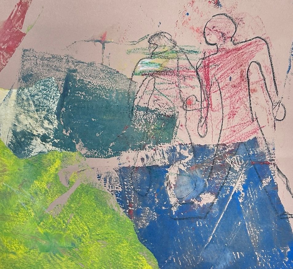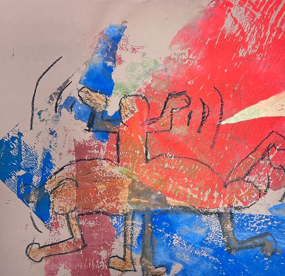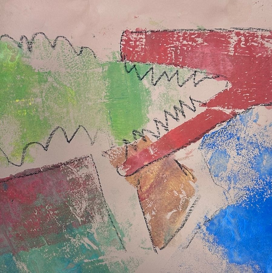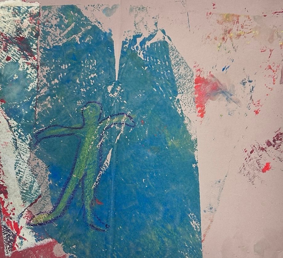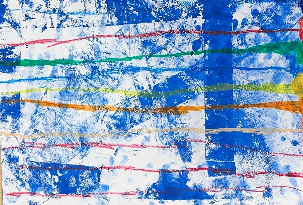 Im Nachmittagsangebot "Druckwerkstatt" erprobten Schüler:innen die Drucktechnik der Monotypie als offenen und experimentellen Zugang zur Bildgestaltung. Durch das Auftragen und Abziehen von Farbe sowie den Einsatz von Alltagsmaterialien wie Luftpolsterfolie, Stoffen oder Baumrinde entstanden überraschende Strukturen, die anschließend kreativ weiterentwickelt wurden.