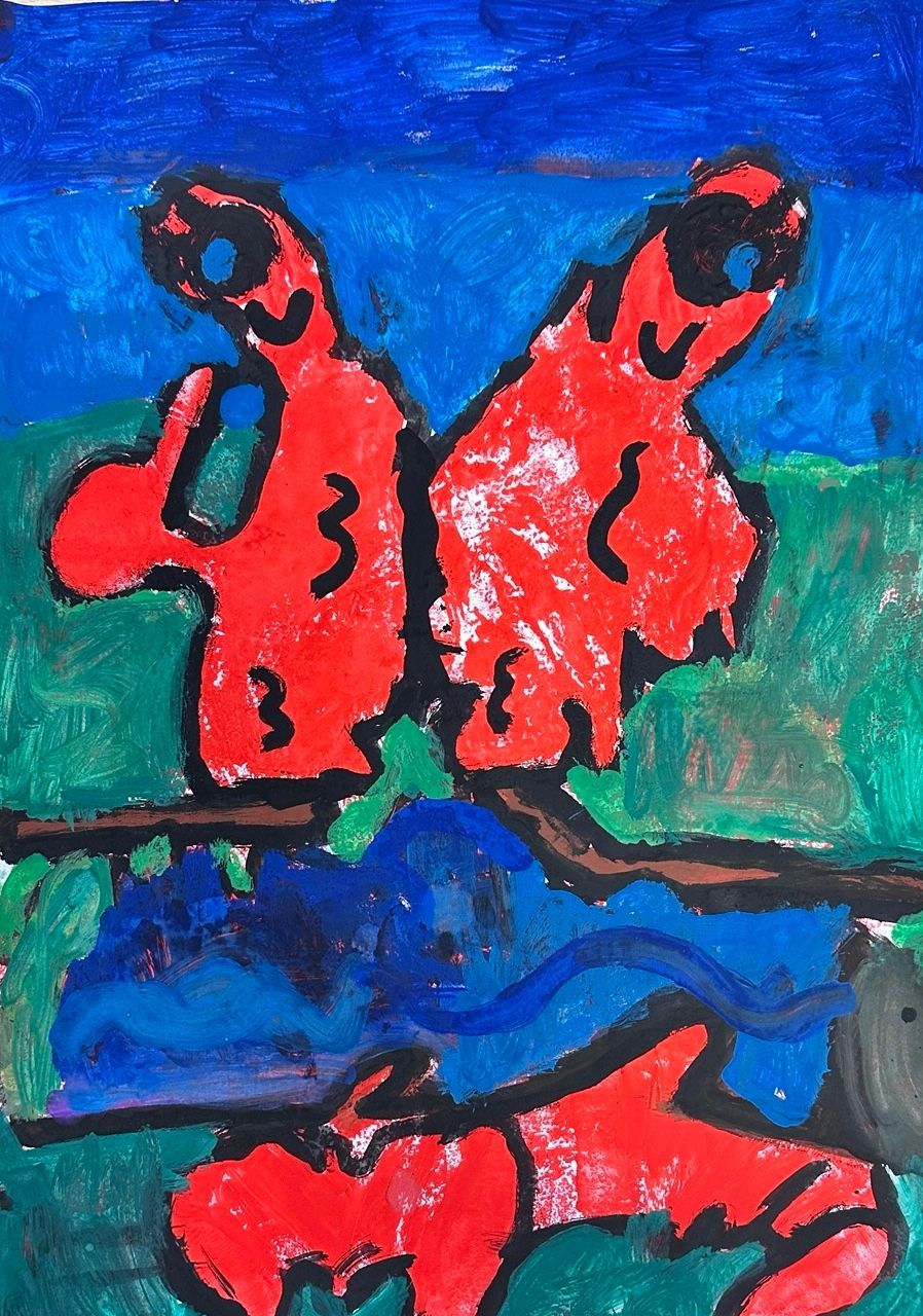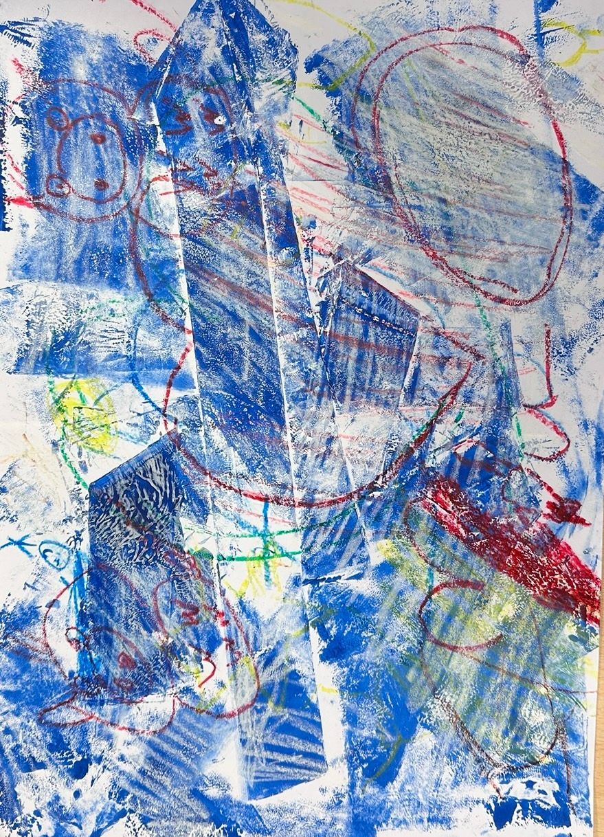 In Anlehnung an Max Ernst und seine Technik der Décalcomanie erfuhren die Kinder, wie Zufall, Material und Fantasie im künstlerischen Prozess zusammenwirken. Das Projekt stärkte ästhetische Wahrnehmung, kreatives Denken und die Freude am forschenden, zeitgenössischen Arbeiten.