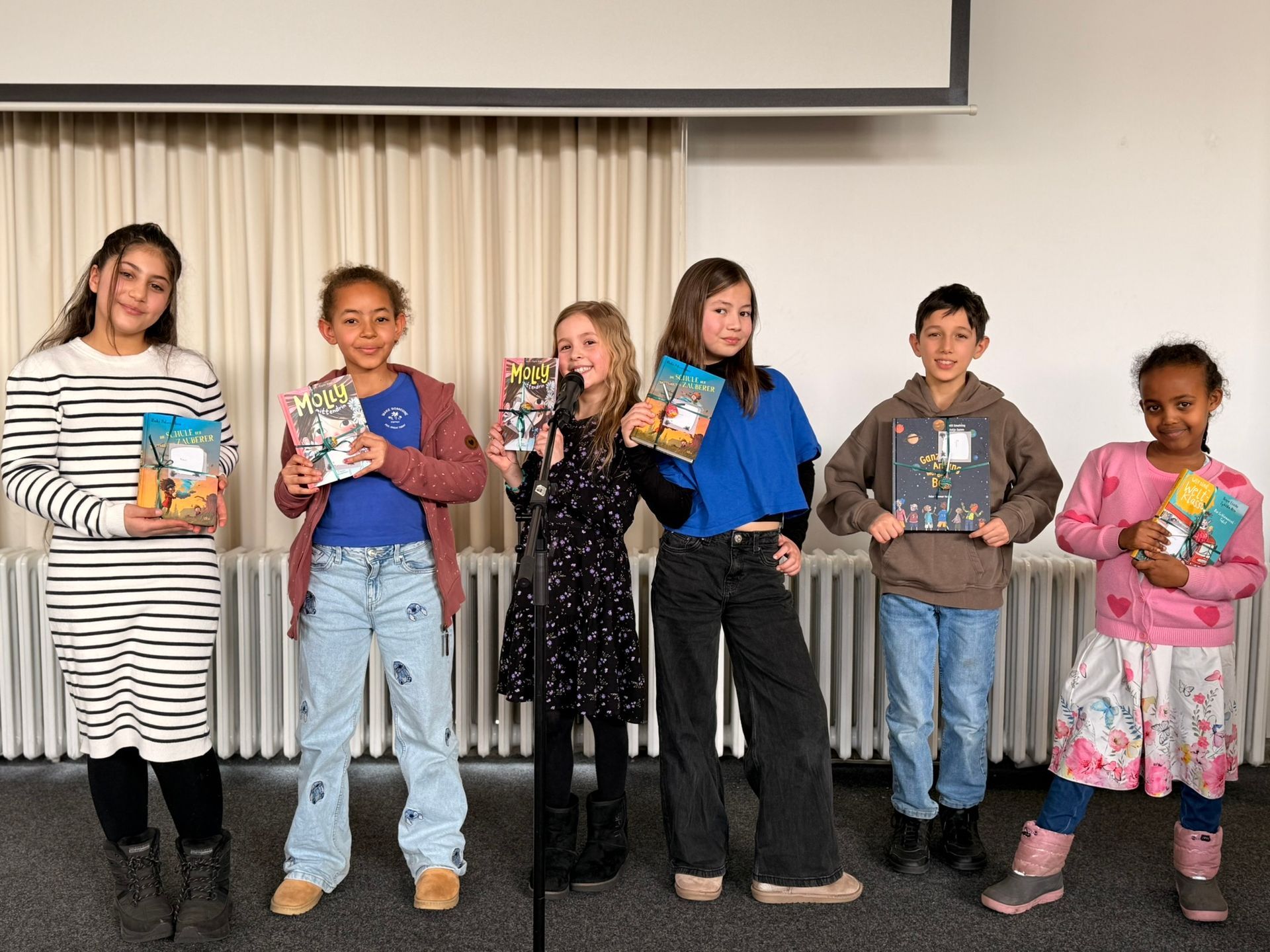 Sechs Kinder aus unserer Schule durften den Festakt „100% Bremer Leseband(e)“ im Landesinstitut für Schule moderieren. Das war eine ganz besondere Aufgabe! Sie standen auf der Bühne, haben durch das Programm geführt und viele Gäste begrüßt.