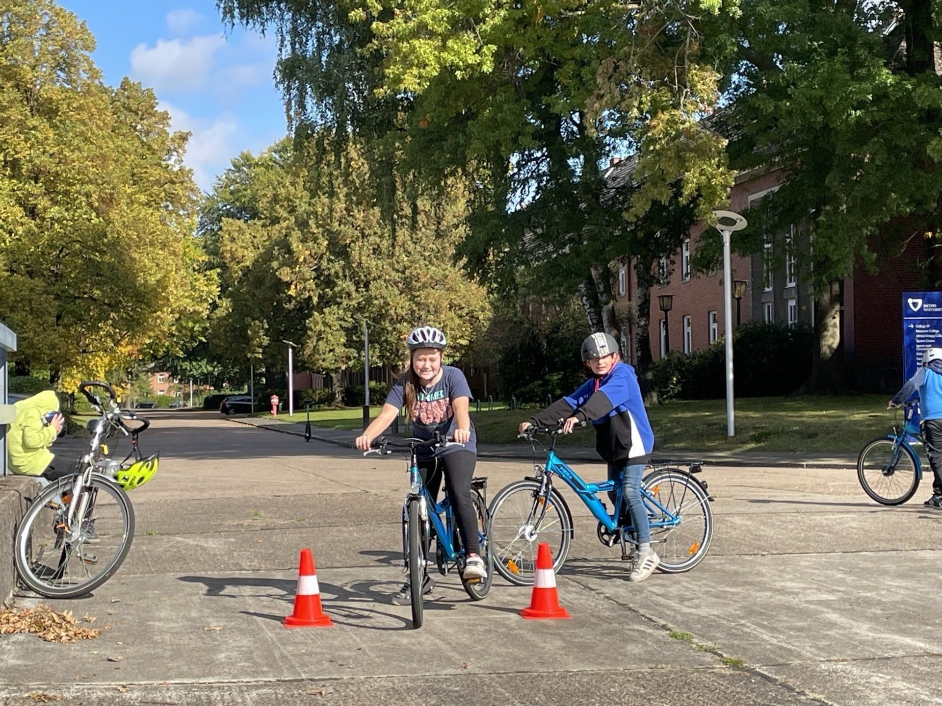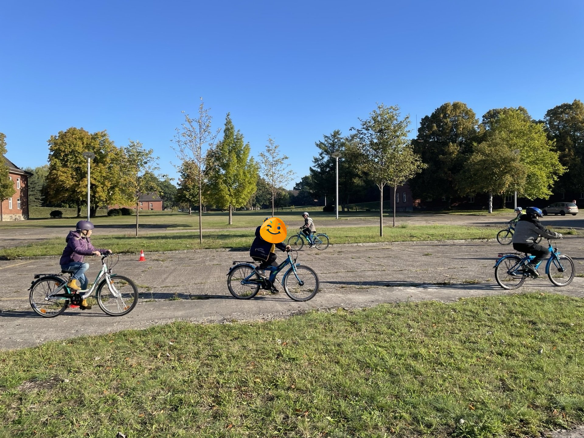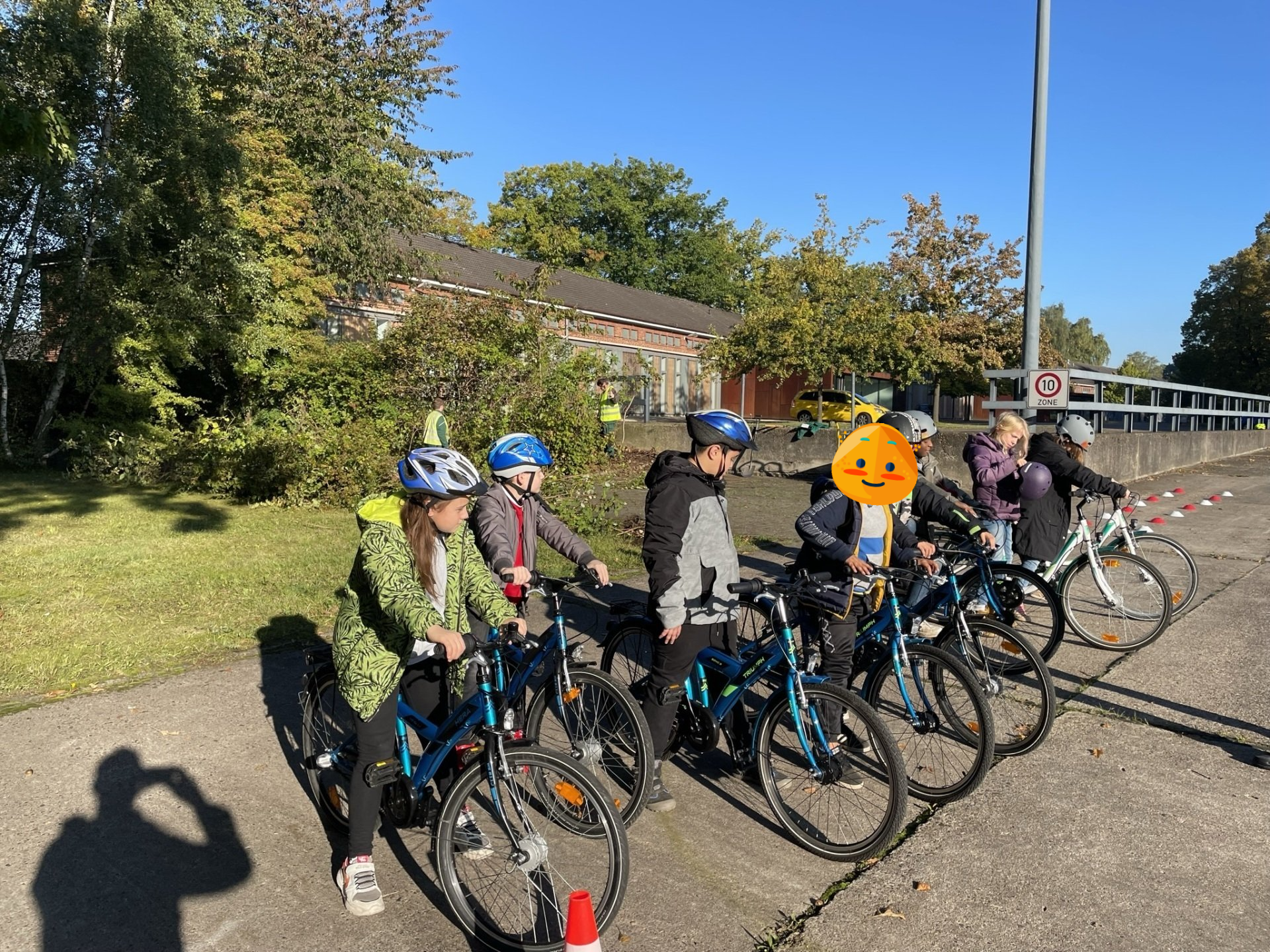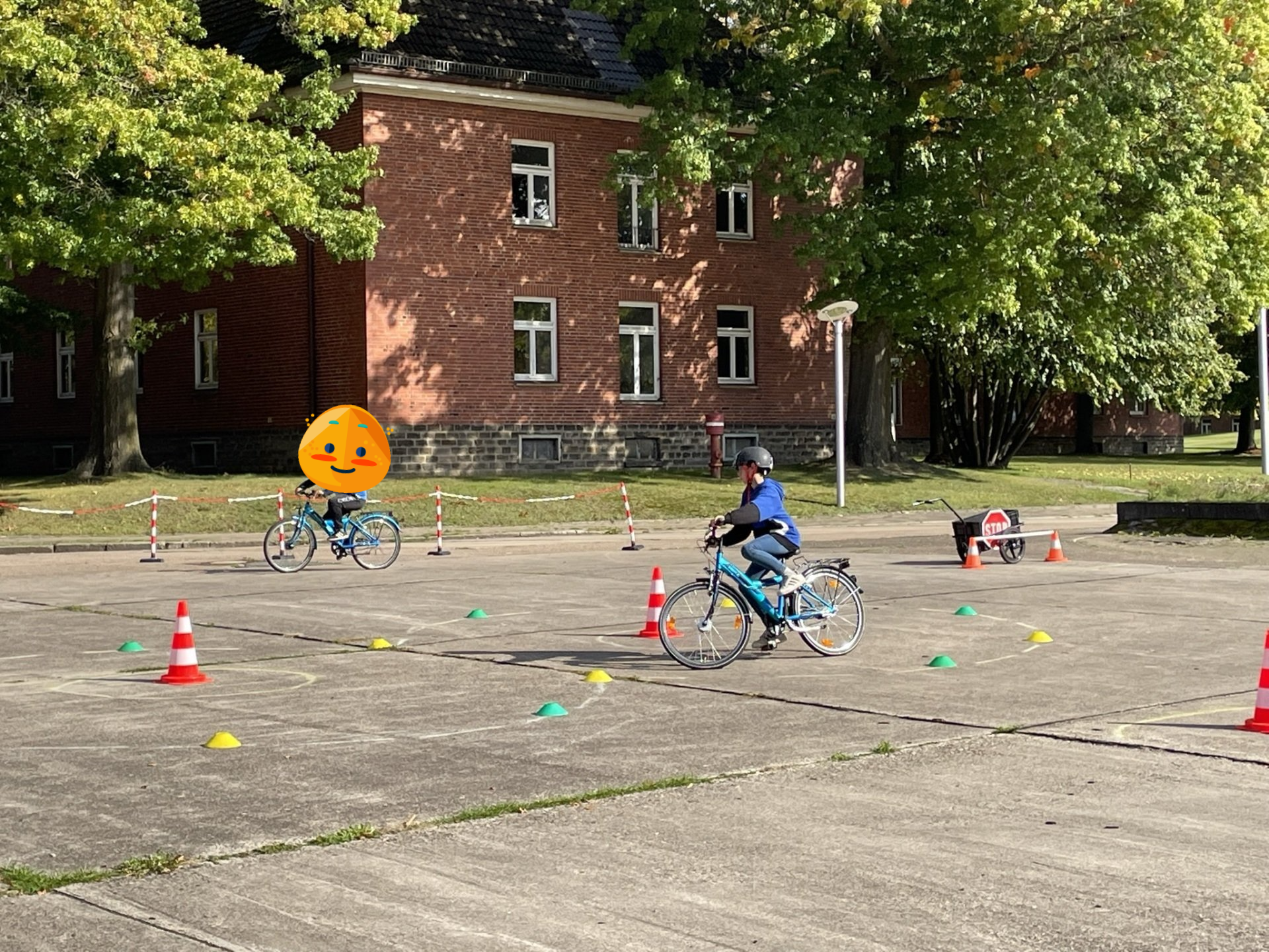 In der letzten Septemberwoche besuchte die 4a gemeinsam mit unserem Kontaktpolizisten den Verkehrsübungsplatz auf dem Gelände der Jacobs University. Nach einer aufregenden Fahrt mit Bahn und Bus und einem kurzem Frühstück ging es auf die Fahrräder. Einen ganzen Vormittag wurde das Fahren, Anhalten und Zeichengeben geübt. So konnten die Schüler:innen Sicherheit im Umgang mit ihren Fahrrädern gewinnen und lernen, welches Verhalten im Straßenverkehr richtig und wichtig ist. Zum Schluss waren alle Schüler:innen deutlich sicherer und aufmerksamer als zu Beginn.