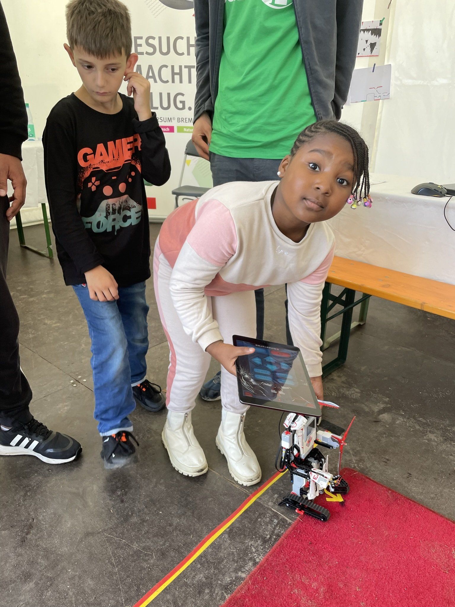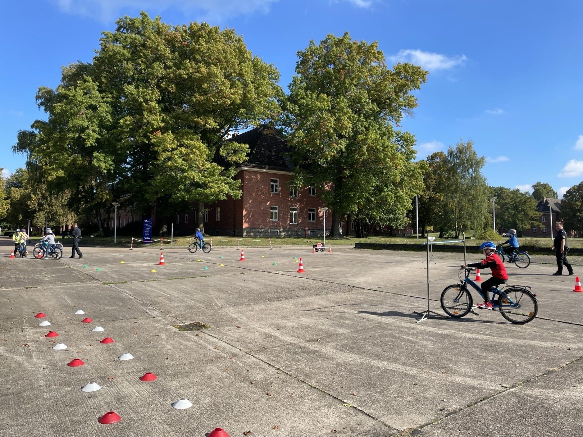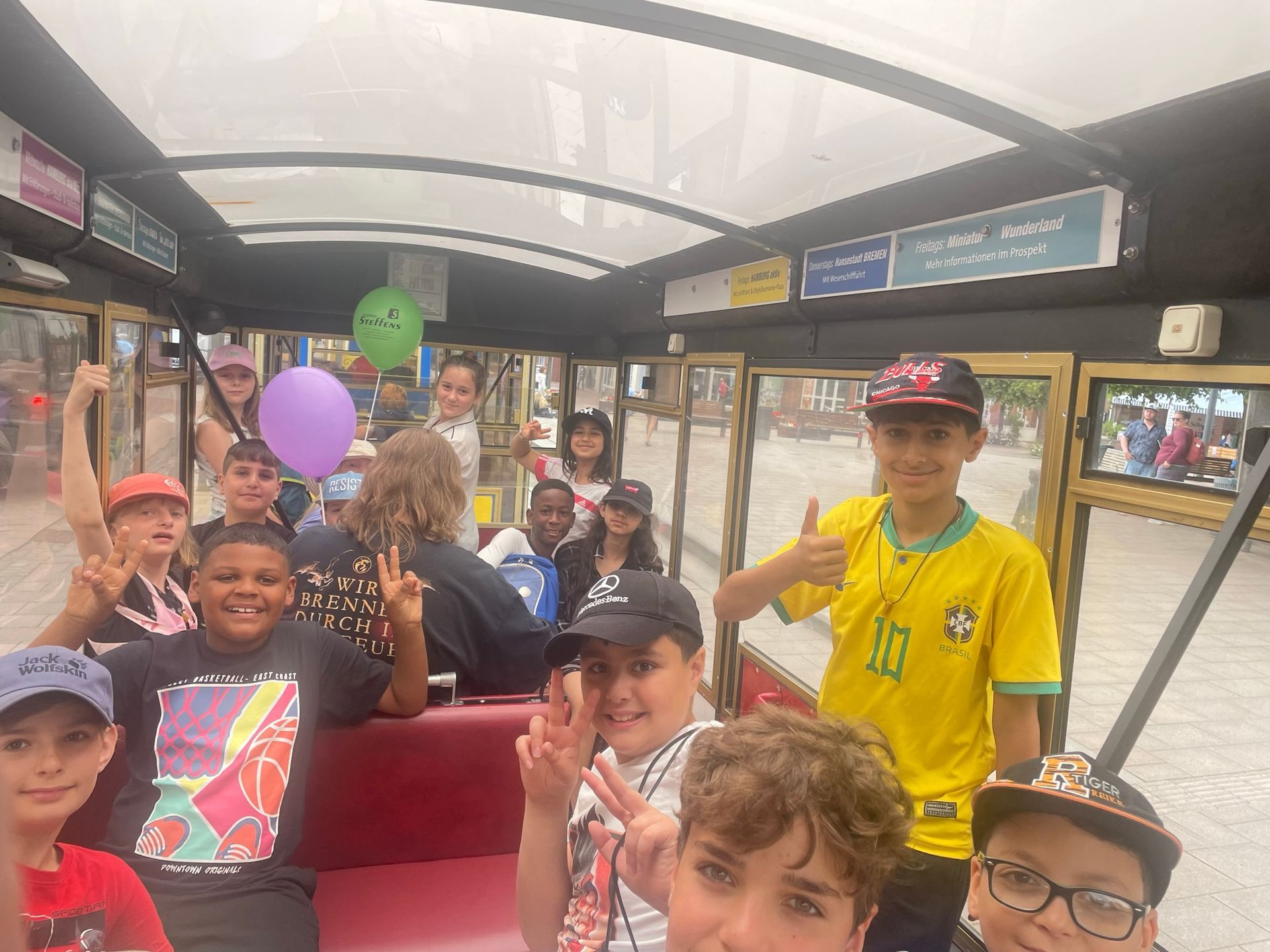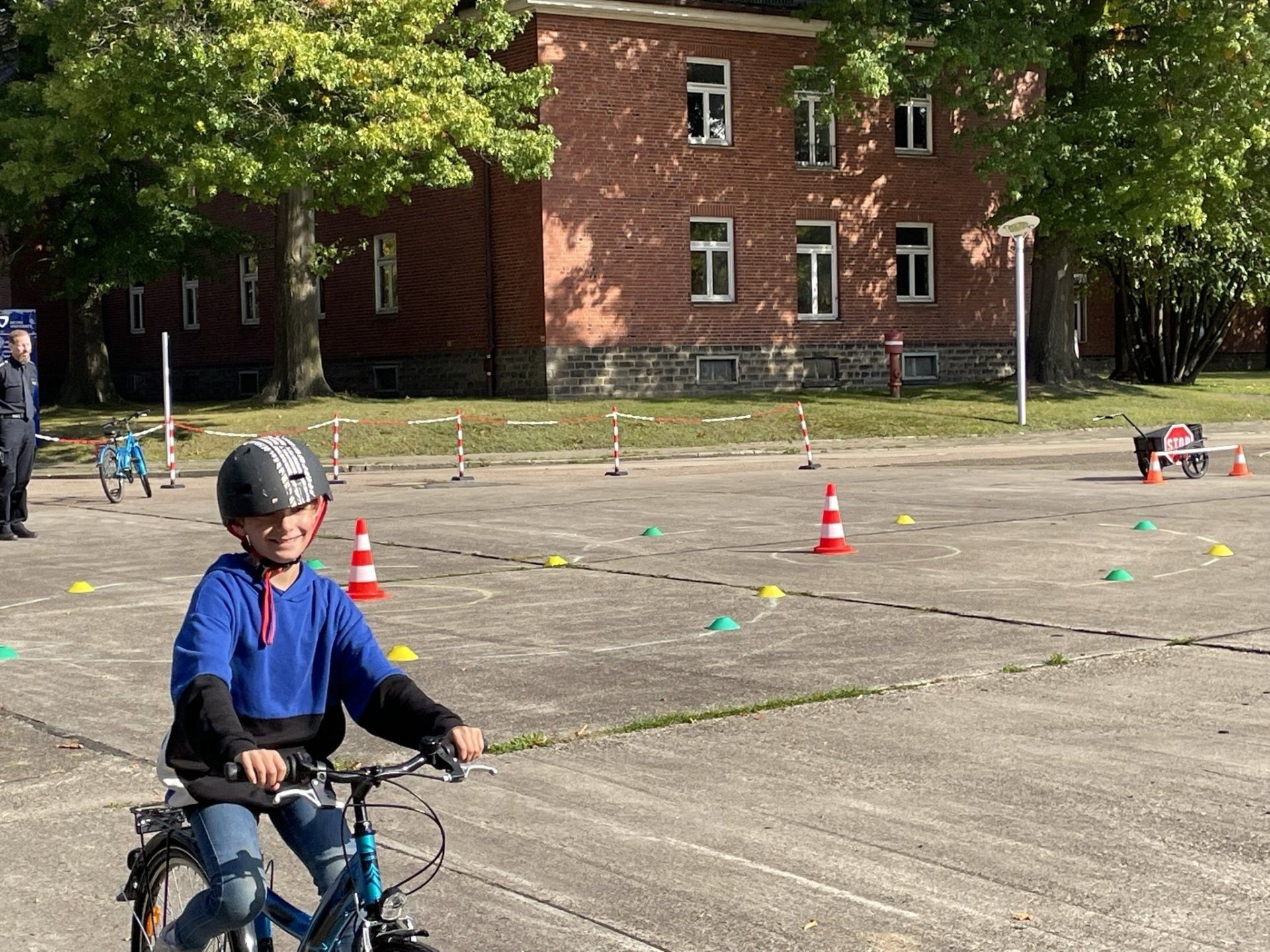 In der letzten Septemberwoche besuchte die 4a gemeinsam mit unserem Kontaktpolizisten den Verkehrsübungsplatz auf dem Gelände der Jacobs University. Nach einer aufregenden Fahrt mit Bahn und Bus und einem kurzem Frühstück ging es auf die Fahrräder. Einen ganzen Vormittag wurde das Fahren, Anhalten und Zeichengeben geübt. So konnten die Schüler:innen Sicherheit im Umgang mit ihren Fahrrädern gewinnen und lernen, welches Verhalten im Straßenverkehr richtig und wichtig ist. Zum Schluss waren alle Schüler:innen deutlich sicherer und aufmerksamer als zu Beginn.