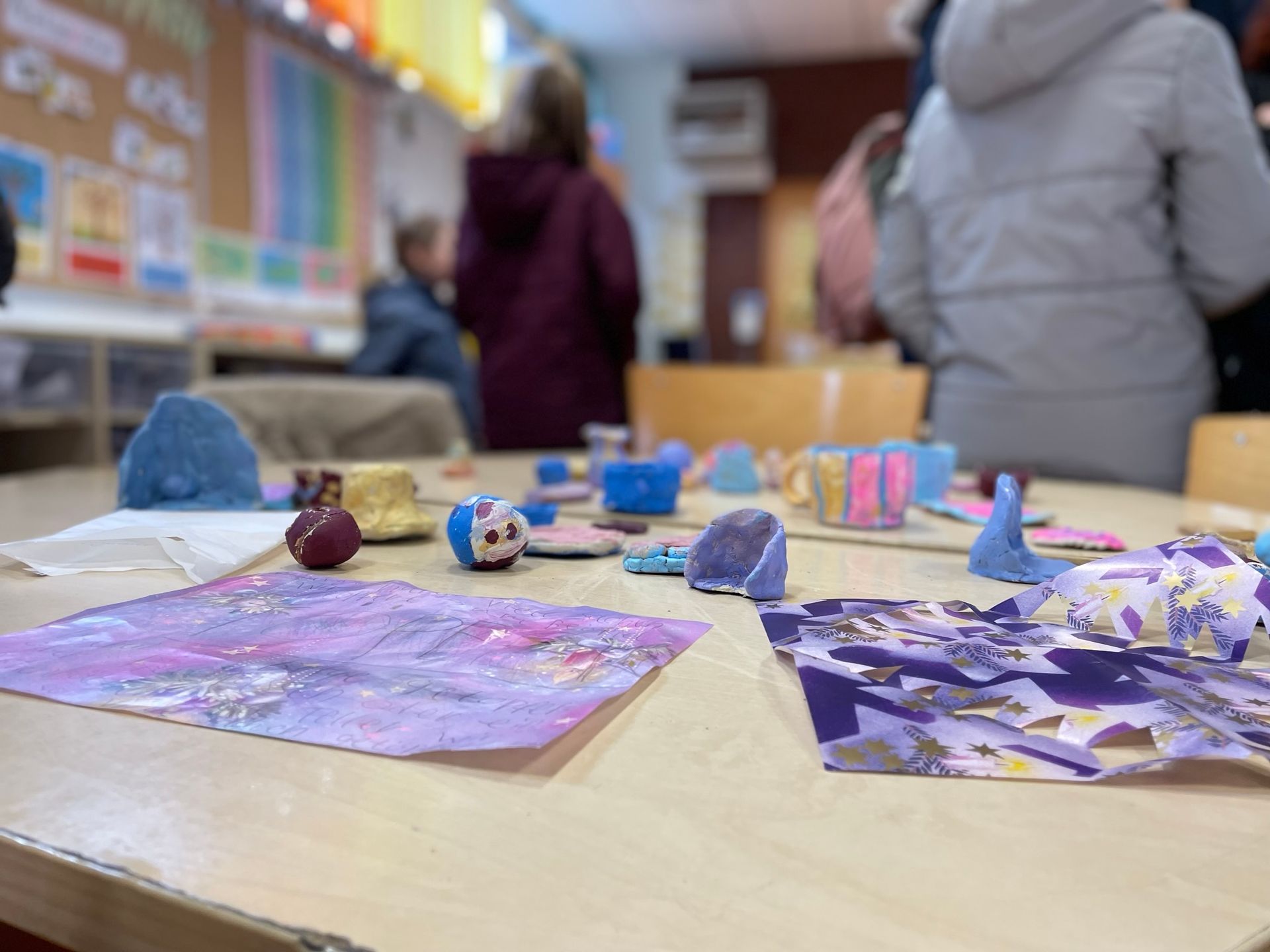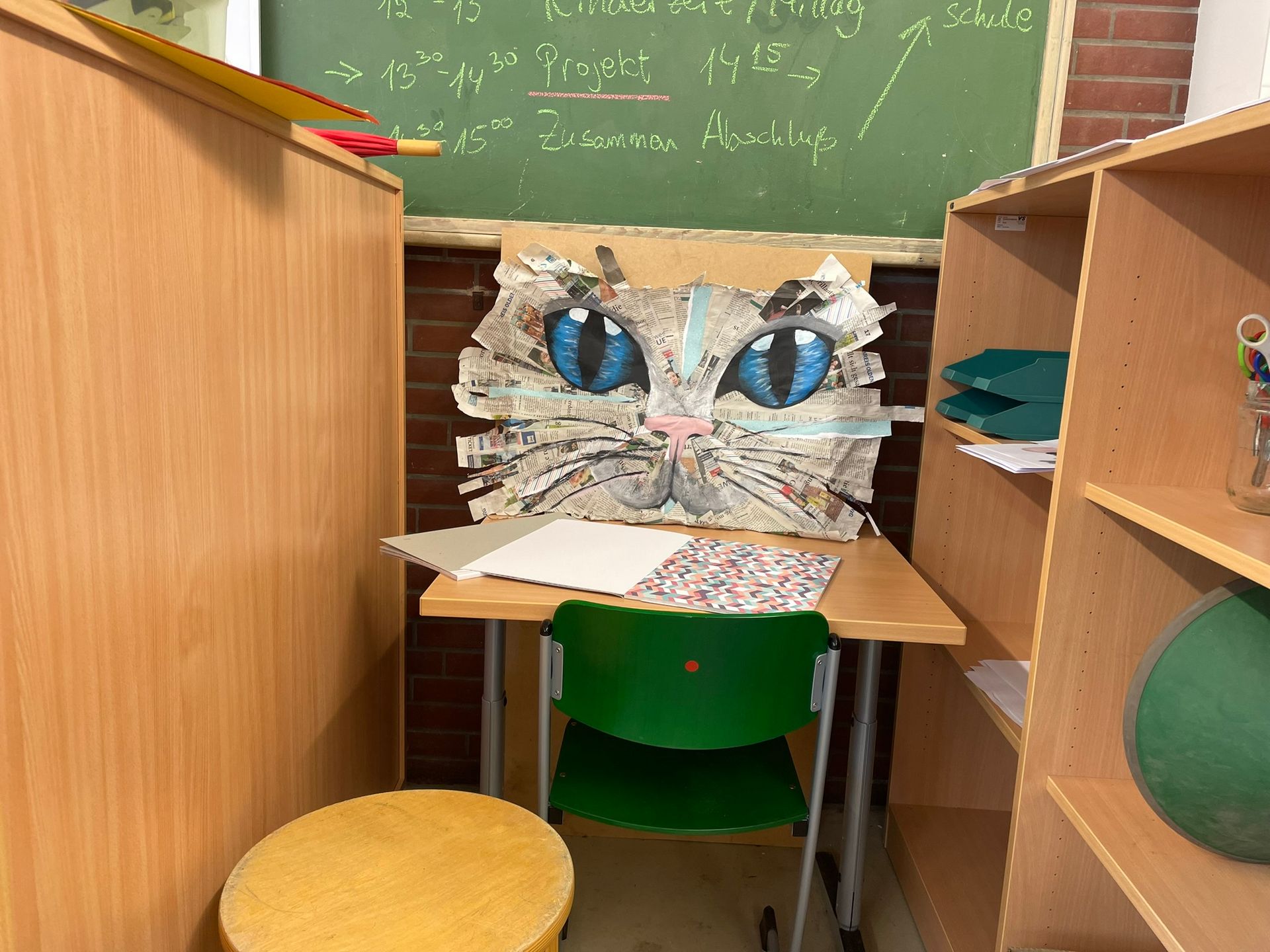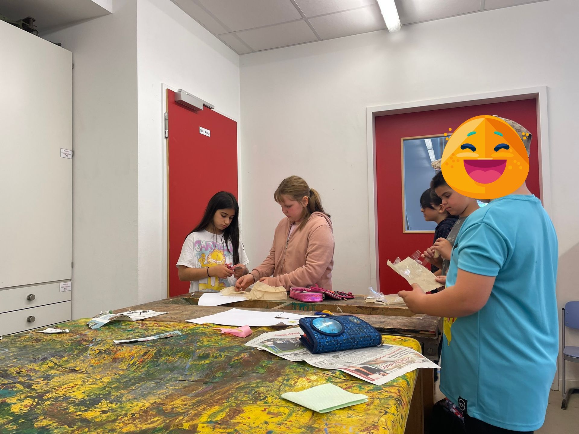 "Kleks" ist ein Projekt in Kooperation mit Kultur vor Ort e.V.. Es findet jeden Donnerstag im "Atelierhaus Roter Hahn" statt. Schüler:innen des 2. Jahrganges können dort zeichnen, malen, plastizieren oder drucken und dabei entdecken, wie eine Idee zu einer Skulptur, einem Bild oder einer Collage wird. Über Wochen wachsen Kunstwerke zu gemeinsamen Ausstellungen und ganz nebenbei schulen die Kinder ihre Ausdauer, Konzentration und Motorik.
