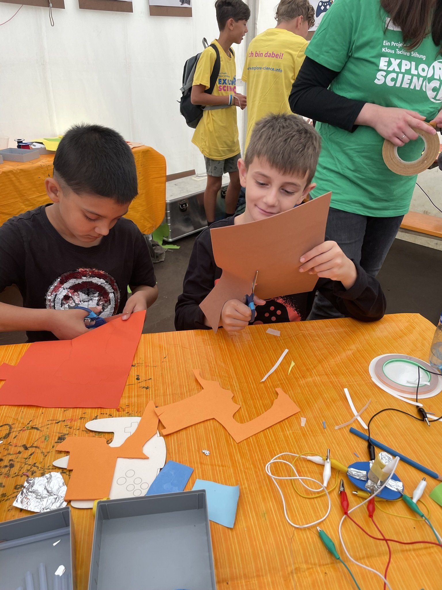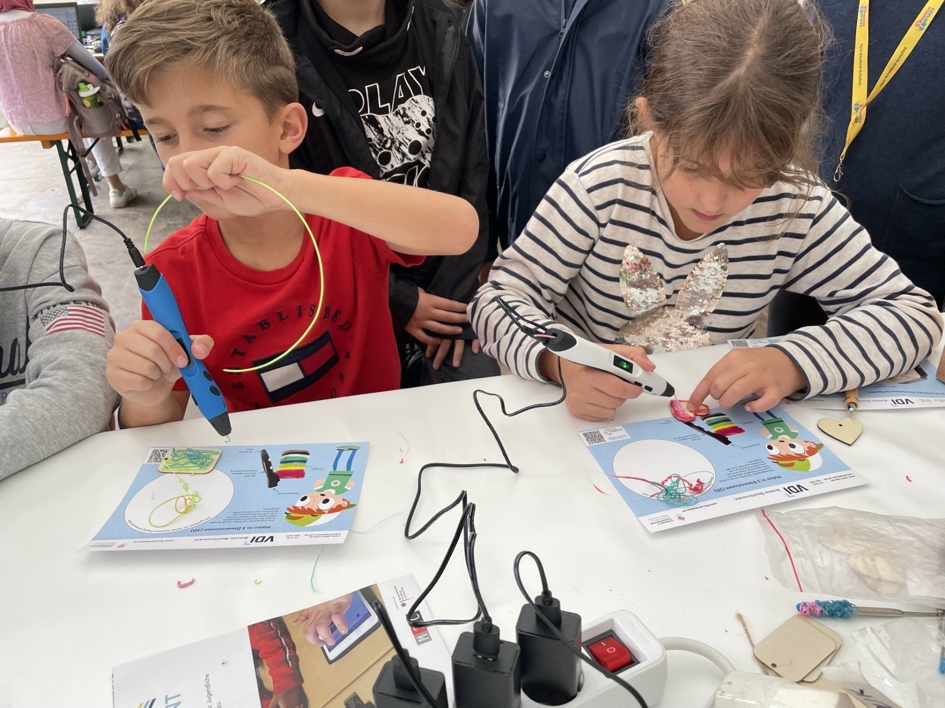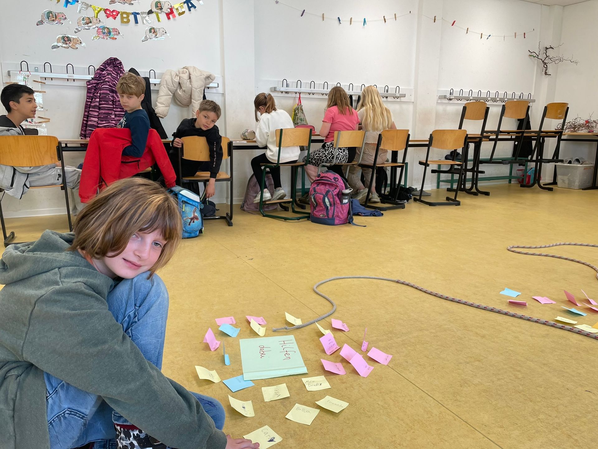 Am 20.04.2023 fand an unserer Schule ein Aktionstag rund um das Thema „Frühling“ statt. Anstelle von Mathematik und Deutsch stand an diesem Tag malen, schneiden, kleben und spielen auf dem Stundenplan. Mit einem Laufzettel ausgerüstet konnten die Schüler:innen Blumenstecker herstellen, Frösche basteln, Eier werfen oder das Jonglieren üben.