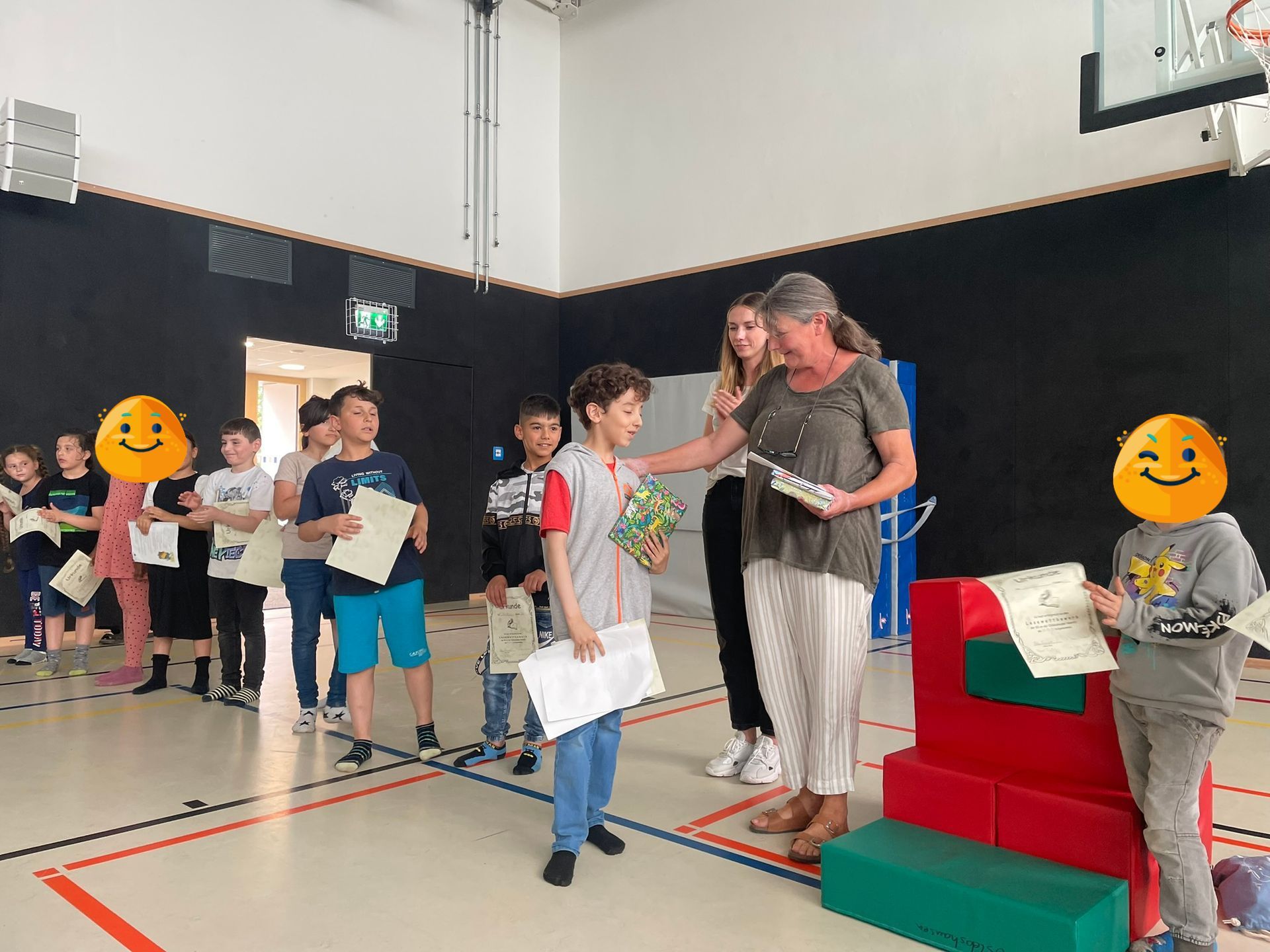 Spannende und lustige Geschichten, die gab es am 20.06.2023 beim traditionellen Vorlesewettbewerb. Die Teilnehmer:innen zeigten, wie gut sie das Vorlesen beherrschen. Nachdem in den vergangenen Wochen die besten Leser:innen in den einzelnen Klassen ermittelt wurden, starteten die Klassensieger:innen, um die besten Leser:innen der Schule zu ermitteln. Diesjähriger Sieger wurde Ayhan aus der Pinguinklasse. Herzlichen Glückwunsch!